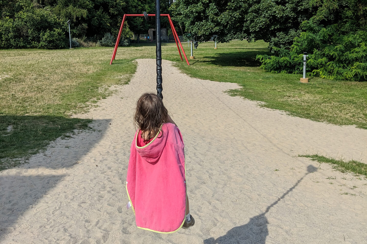Wir sind mit dem Zug gefahren, das war schon ganz schön spannend! Als wir endlich da waren, war es schon fast dunkel, aber Papa hat gesagt, wir gehen noch raus. Da gab’s draußen einen riesigen Spielplatz und einem mega Luftkissen! Ich bin ganz oft rauf und runter gehüpft, das hat so doll gewackelt, ich musste ganz viel lachen. Abends gab’s dann noch leckeres Abendbrot und dann war Kinderdisko! Mein Lieblingslied kam auch: „Das ist so ein schöner Tag, lalala!“ Ich hab ganz laut mitgesungen und getanzt.